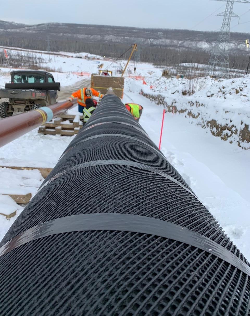 ) Since 2023, a contractor has used only Grid-GuardHD PLUS on the lines he is responsible for. During his most recent project, he remarked on his years of construction experience and the ease of use with Grid-GuardHD PLUS, when compared to other rock shields: “I’ve been in pipeline construction for over 30 years and wish this product had been available sooner. It’s so much easier to use: super flexible, easy to tape, and far less hassle in the field. I’m sold.”