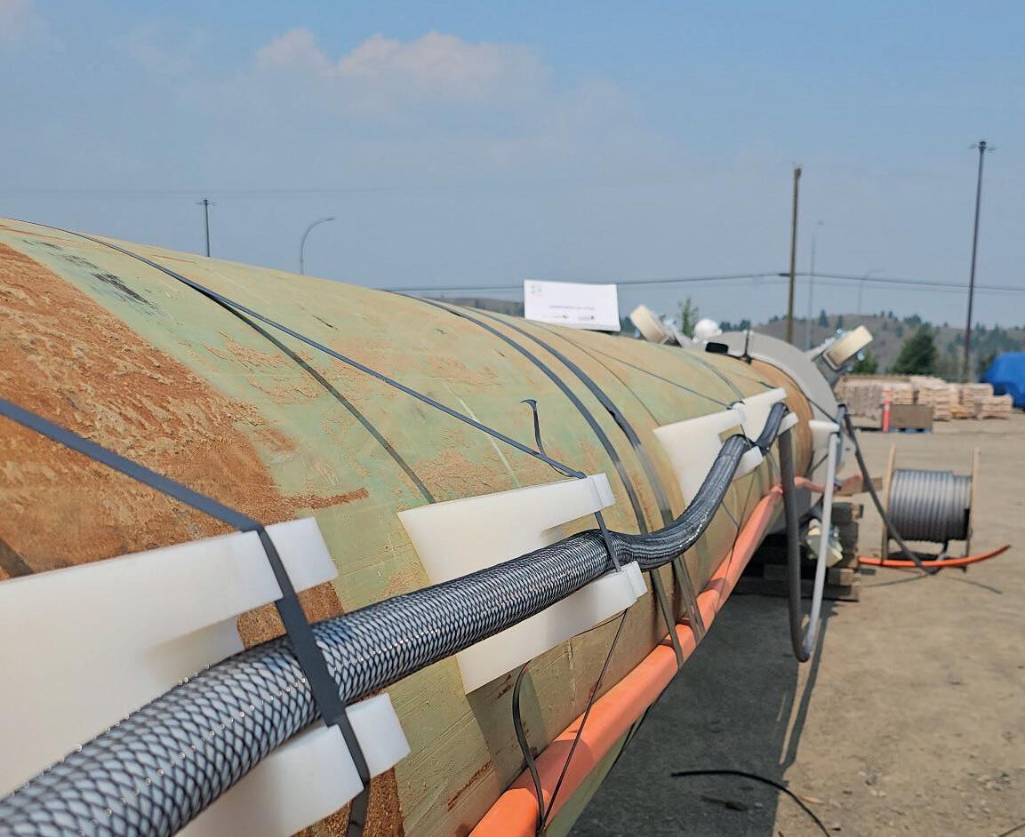 Historically, rock shield installation has been a tedious, labour-intensive process. Many traditional materials are heavy, difficult to position, and prone to shifting during lowering-in. Grid-GuardHD PLUS was developed to simplify that process. It is lightweight yet maintains enough rigidity to hold its shape, allowing a single worker to carry and position it easily. The material requires less tape for secure installation, and its smooth geotextile backing allows cradles to slide cleanly over the pipe without bunching or tearing. These improvements reduce installation time and labour costs while improving safety and consistency in the field.