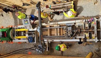 a pilot drive or auger bore, relies on the initial setup. No setup is quite the same.” He approaches each crossing with emphasis on safety, orderliness and efficiency of the worksite. His excavations are well thought out and aesthetically pleasing. Individual factors such as soil classification, depth, and groundwater all play a role in determining pit design. In addition, the consideration of the equipment footprint and how it relates to the proposed bore path to achieve an accurate outcome takes immense amounts of pre-task planning. Let’s not forget about the potential change of formation and how it can affect the tooling and loading of the machine in the launch pit. “You can’t hit the target, at any distance if your gun keeps moving”, says Chad. Securing the equipment in place is very important and an adequate backstop is critical. If the equipment can be easily moved before you start it’s not likely to improve during the pilot phase of the project.
