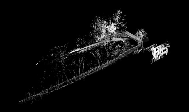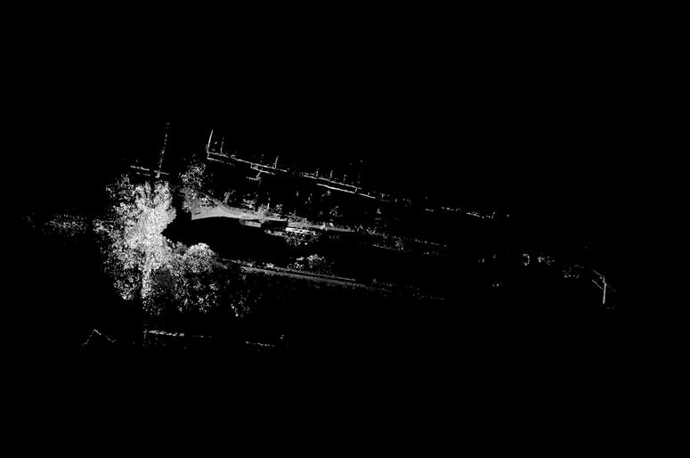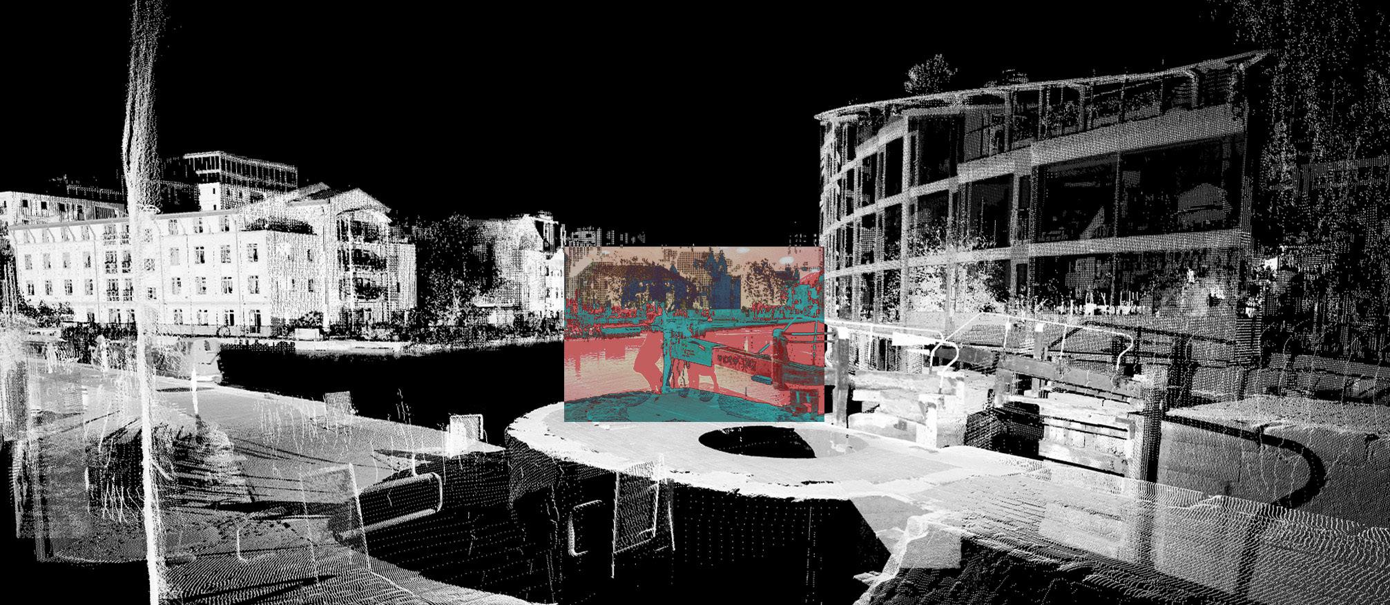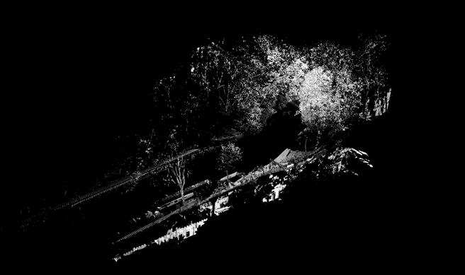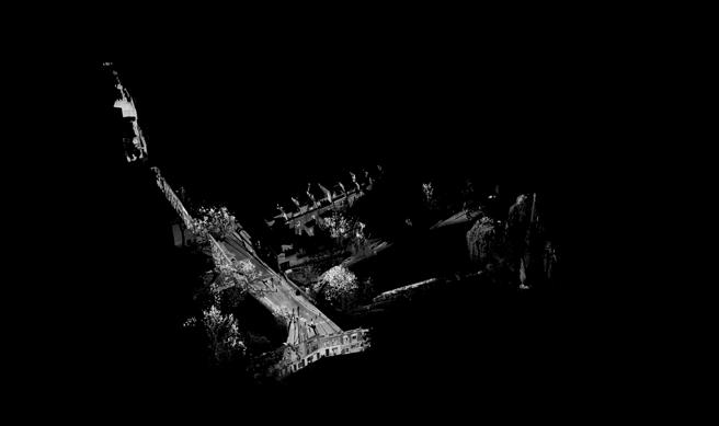To process the data, Faro Scene was used in the first step to process, register and align the scans. Then they were exported and processed in Cloud Compare and Bentley Pointtools vI8. Finally, the results were edited in Adobe Photoshop and Premiere pro and merged with the archive material.