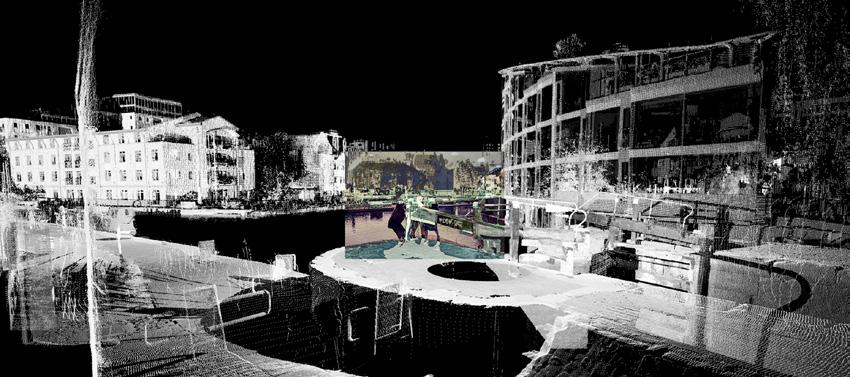 The aim of the design project is to bring archival material into the digital realm, revealing and representing different temporal layers of the built environment. The 3D data from the survey is used as the current representation. The digital 3D model makes it possible to render images from the same perspectives as