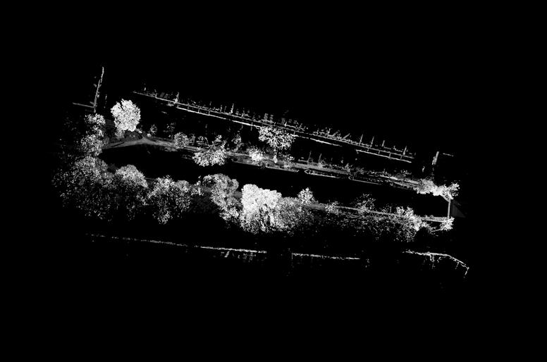 Of great importance in the processing of the scans was the reflection of materials. The survey was done around water, which is in constant motion and too reflective to be picked up. Also, the high percentage of vegetation and the reflectance of festers and modern materials like metal is not ideal for scanning. The attached graphs in the portfolio illustrate the reflectance of the different materials. The water was not captured and is therefore shown in black. Looking at the water surface, some reflections and specular reflections are visible, which are shown in blue. Semi-reflective and moving materials and objects are shown in white. Overall, it can be said that the data captured was good and correct and the colourisation was successful.