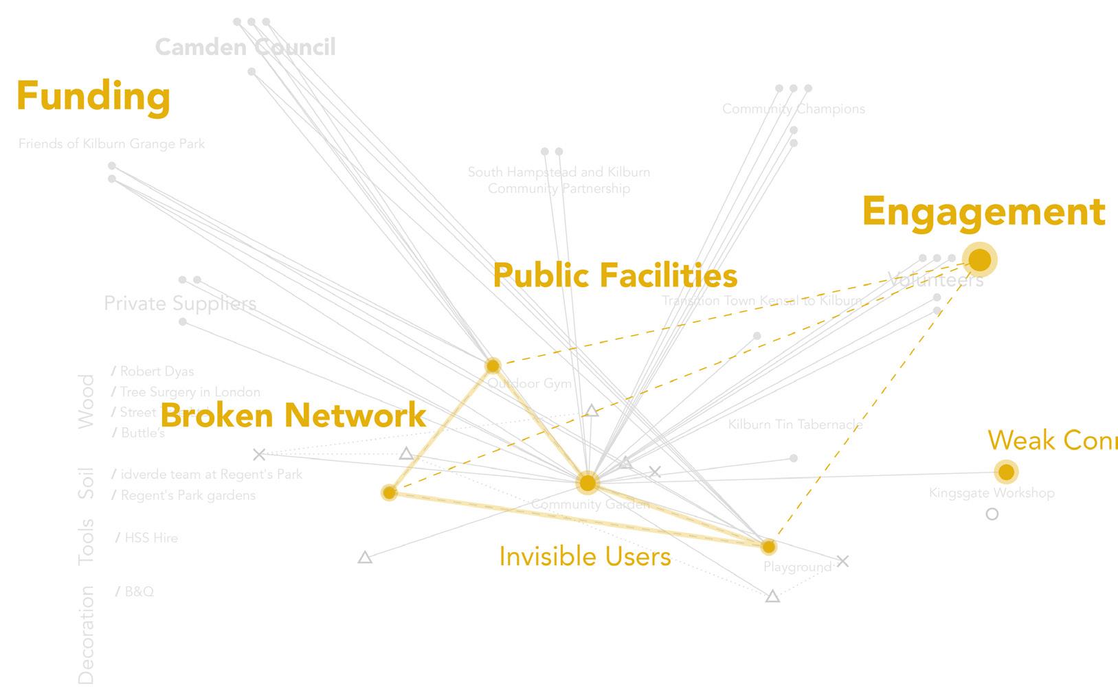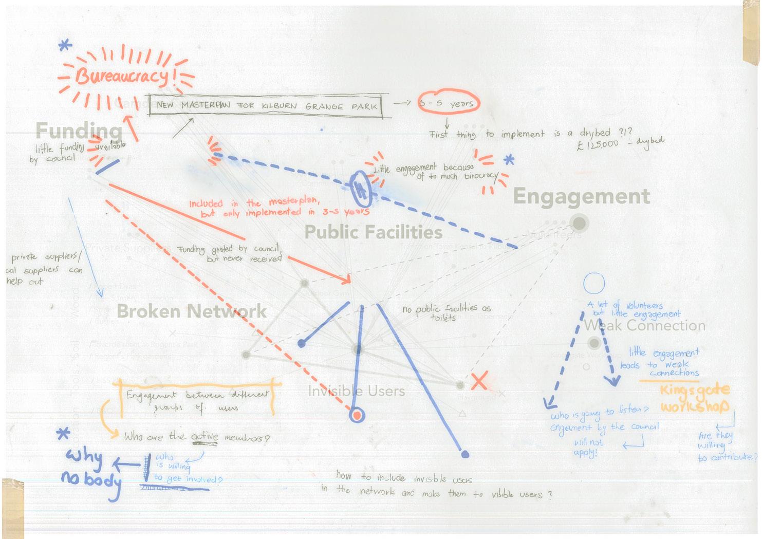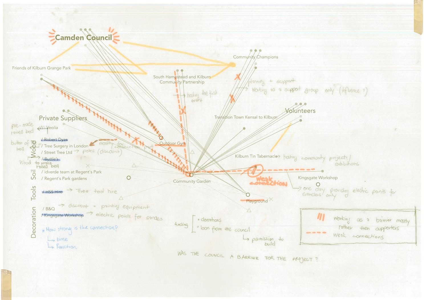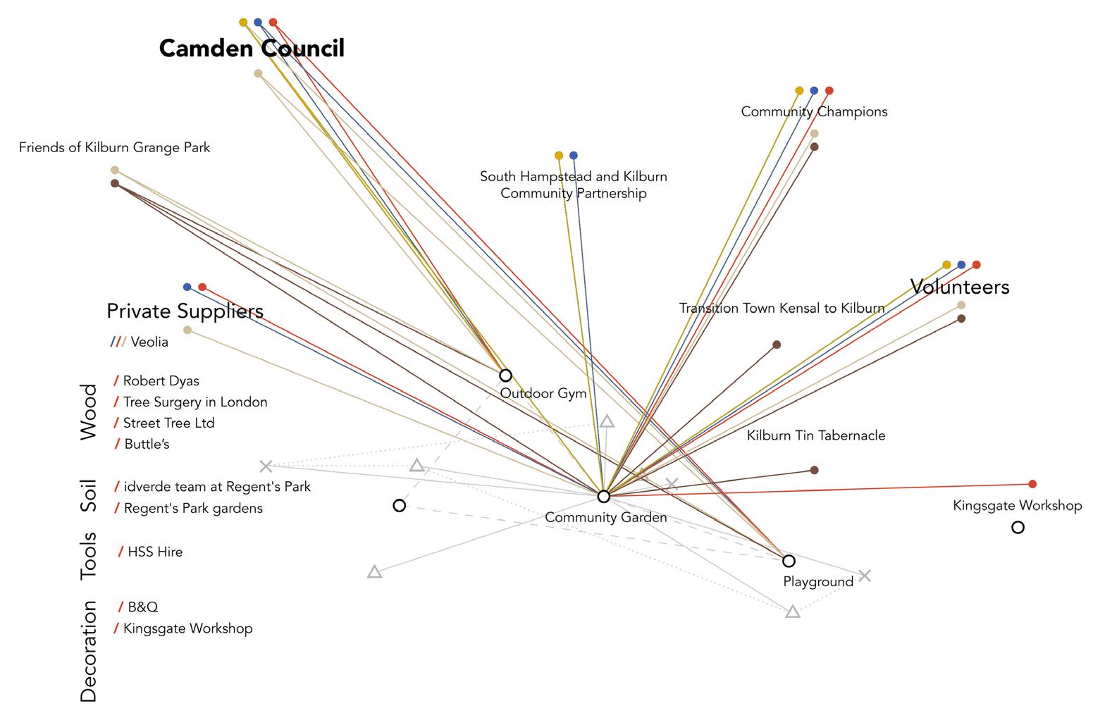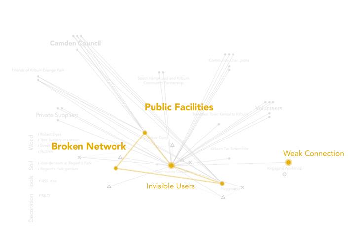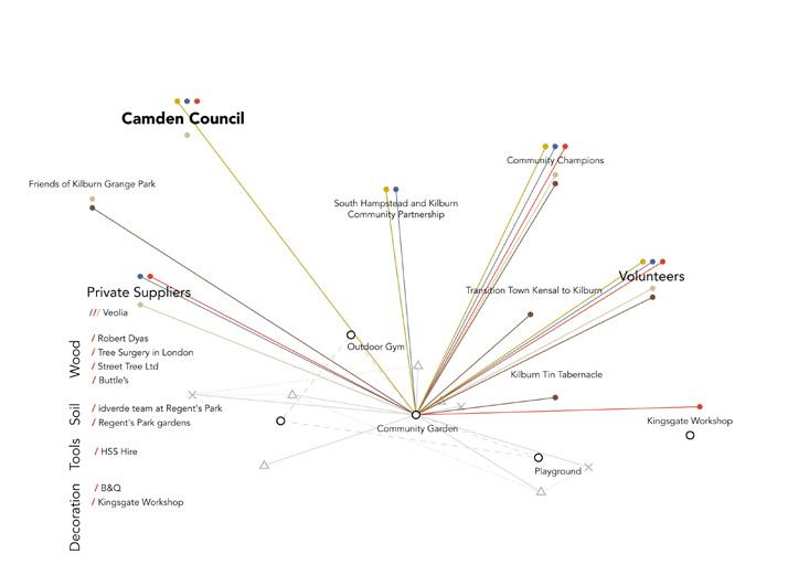 Looking for an opportunity to design for the community, we chose Kilburn Grange Park and the area around Kilburn Community Garden to focus on. We were searching for a way to collaborate with and learn from the community through a project beyond buildings and physical space, without interfering with the existing common setting of the neighborhood. In search of a framework to begin our process with, we realized the shortage of such tools for the professional facilitators willing to follow co-design principles. This realization, shifted our focus from designing a physical structure to creating a framework based on which community-based projects can be implemented and sustained. Moreover, to test and criticize the process, we proposed a small-scale community project in the context of Kilburn Grange Park as an example of how a design intervention can be planned with respect to this framework.