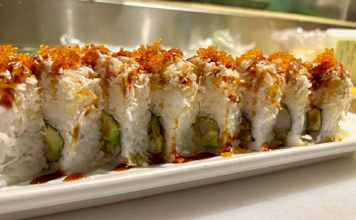 One top seller, the Sushi Pizza, features a deep-fried California roll topped with chopped scallops and sauce.