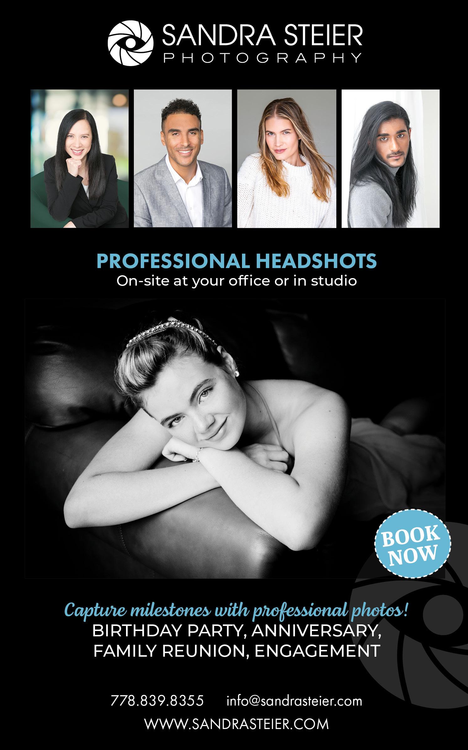 Sandra Steier Photography & Pop Up Portraits (ad p. 20) 778-839-8355 sandrasteier.com popupportraits.ca