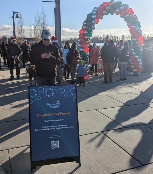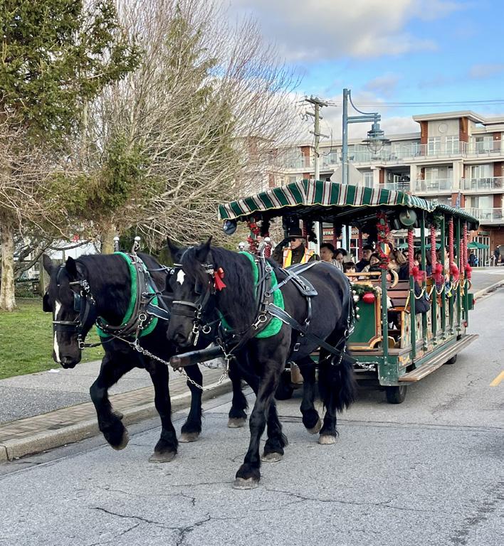 Looking back, we are grateful for the good weather during the Winter in the Village events! The first annual tree lighting in front of the Steveston Tram Museum kicked off the festivities. Santa arrived by boat on December 8, followed by photos inside the Cannery. Oldfashioned horse-drawn carriage rides, always a crowd favourite, were made possible by the Steveston Merchants Association and Tourism Richmond. These rides also raised funds for the Richmond Christmas Fund. The dog photos with Santa and the festive dog parade were also a big hit. A special shoutout goes to Steveston’s merchants for their beautiful holiday window displays. Congratulations to Splash Toy Shop, this year’s grand prize winner, for their enchanting transformation of their window into an advent calendar.