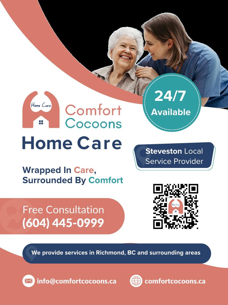 Comfort Cocoons Home Care is proud to be part of the Steveston Village community. We provide personalized care that helps seniors live independently with dignity, comfort and joy