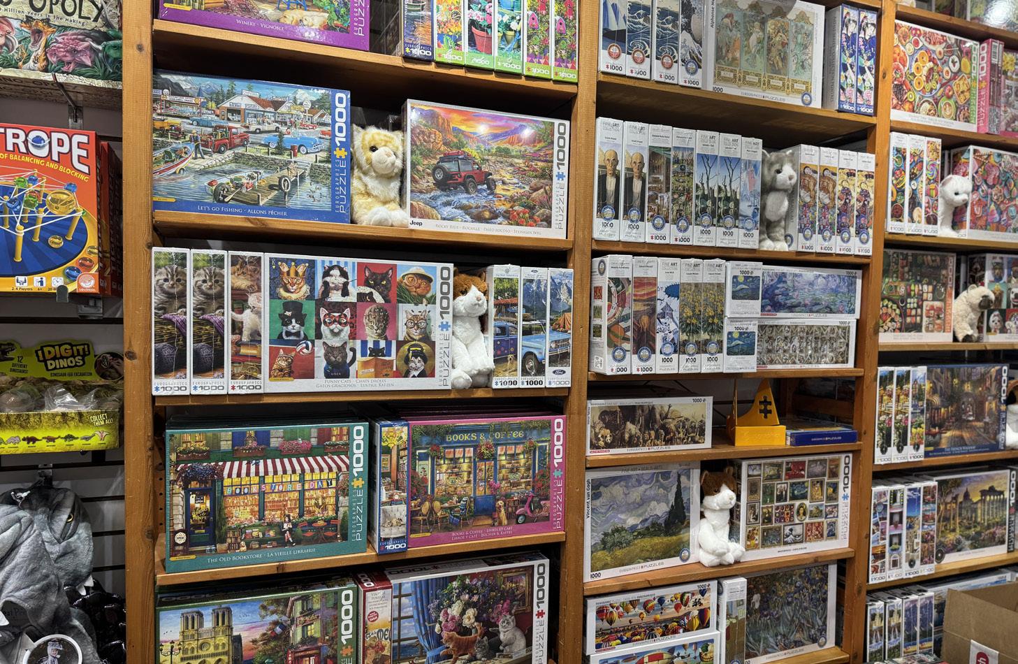 Stuffies—from cats and dogs to crocodiles and unicorns—are all top sellers. Close behind are dress-up items, LEGO, books, puzzles, games and plenty of trucks. Classic brands like Ravensburger and Brio, as well as Folkmanis Puppets, Usborne Books and Fat Brain Toys are just a few of the popular lines offered.