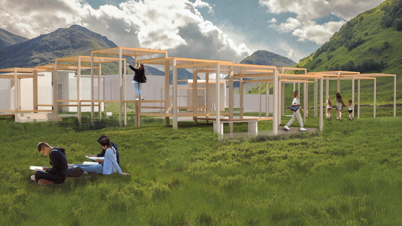 Forest Pavilion stems from ideas of fragmentation and elevated planes that are showcased in Fujimoto’s House NA. The differing levels of space shown in House NA are a direct correlation to the four fragmented spaces in Forest Pavilion. With similar intentions, Wald Pavilion features a walkway that looks out over its central community space; this walkway extends over a nested space that provides some seclusion for any group or individual. For larger gatherings, Forest Pavilion offers an open plan space that is defined by a floor depression and a small stage for a host. The idea of each structure representing trees stems from conceptual aspects which Fujimoto dennotes for almost all his projects. While the precedent, House NA leans towards being a single tree with fluid spaces, connecting like brances, Forest Pavilion contains several “trees” while still maintaining an exterior fluidity.