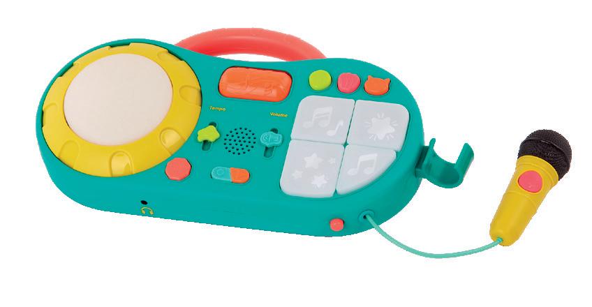 Chante sur 8 airs préenregistrés ou enregistre ta propre chanson. Lorsque tu chantes, tu peux facilement amplifier ta voix et contrôler le volume. À partir de 18 mois.
