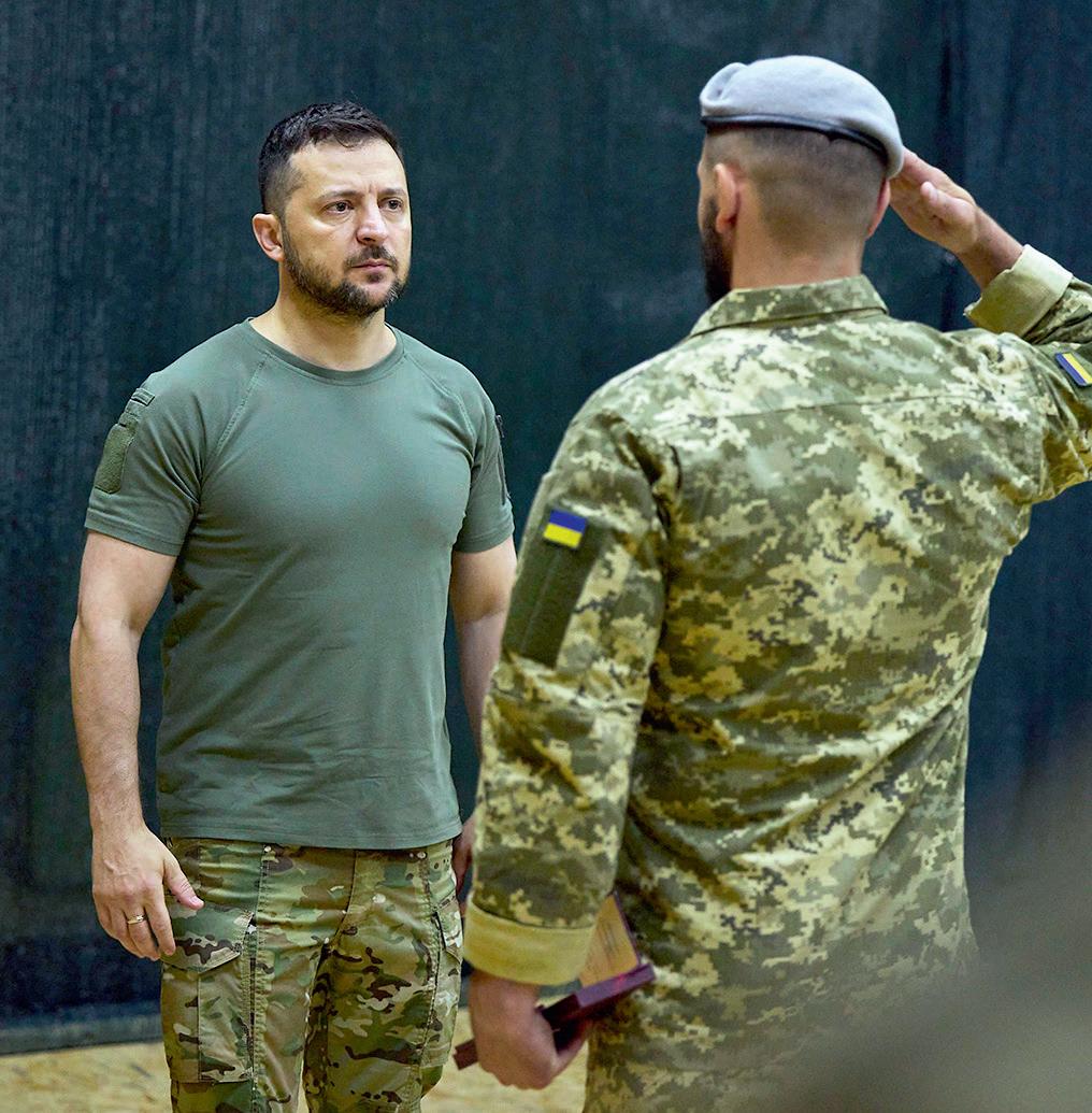 Poetin blijft intussen de tijger berijden die hij zelf heeft losge laten. Hij dacht met een ‘speciale militaire operatie’ Oekraïne snel onder de voet te lopen, maar zijn strijdkrachten worden nu overal teruggedrongen. De nepreferen da en de daarop volgende inlij ving van vier Oekraïense oblas ten waren een vlucht vooruit. Ze maken het nog moeilijker een compromis te sluiten. Als hij die gebieden in een onderhandel de vrede afstaat, zouden dat in de ogen van zijn achterban dus stukken Rusland zijn. Er is weinig kans dat hij dat politiek overleeft. Als hij ook de Krim verliest, is die kans zelfs nihil. Een nederlaag of ongunstige vrede betekenen waarschijnlijk zijn afzetting, mo gelijk gevangenschap of dood.