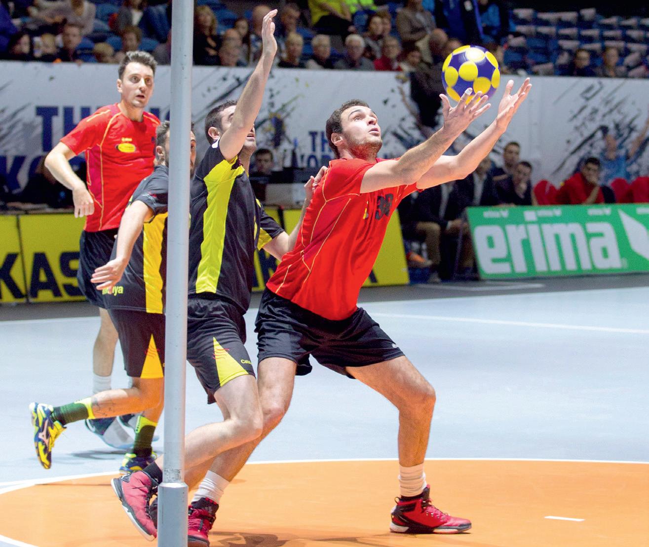 Aangezien het man op man is, be staan er 2 vormen van verdedigen: ‘voorverdedigen’, waar de bal niet naar de aangeefpositie mag gaan en het samenspel bemoeilijkt wordt, en ‘achterverdedigen’, waar men mikt op missers bij de tegenstand en spelher vattingen. Goeie ploegen spelen ‘dif ferentieel’, in functie van de omstan digheden. “De drempel van de sport is hoog en er zijn veel vaardigheden vereist. Voordeel is dan weer dat elk soort atleet aan bod komt. In tegen stelling tot bijvoorbeeld basket zijn ook kleine atleten welkom. Iedereen heeft een functie binnen het samen spel.”