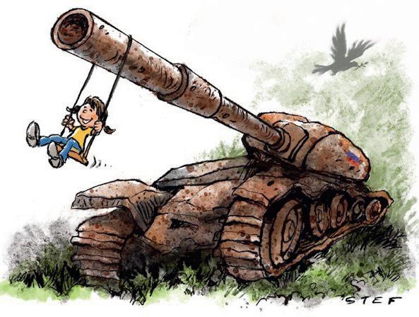 Echte despoten moeten geen publieke opinie vrezen in hun be slissingen over oorlog en vrede. Dat heeft het nadeel dat ze oor logen kunnen voeren waar het volk niet achter staat, maar dat heeft het voordeel dat ze toegevingen kunnen doen en gezichtsverlies lijden om een oorlog te vermijden, of er een te beëindi gen. Democratieën zijn veel logger op dat vlak. Het ergste zijn de systemen tussen de twee, waar de leider wel een oorlog kan beginnen, maar die niet kan beëindigen zonder door zijn eigen volk afgemaakt te worden. Poetin is zo een leider.