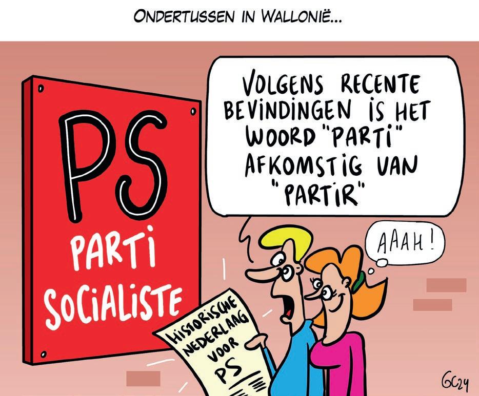 in het Waals Parlement. Het huwelijk is nog niet voltrokken, maar op de verkiezingsavond hebben ze wel verlovingsringen uitgewisseld. Die relatie zal ook de federale regering bepalen. Het signaal van de kiezer dat hij een rechtser beleid wil, klonk deze keer nog luider in Wallonië dan in Vlaanderen. Het evidente antwoord op dat signaal zou een Zweedse regering zijn (N-VA plus liberalen en christendemocraten aan beide kanten van de taalgrens). Die heeft ook een mathematische meerderheid. Onder het gras zitten echter adders, zonder verkleinwoord. De vorige Zweedse regering had een meerderheid in Vlaanderen, maar niet in Wallonië. Bij een heruitgave zou het omgekeerde het geval zijn. De Wever heeft op voorhand fel uitgehaald naar partijen die federaal zouden willen regeren zonder een Vlaamse meerderheid. Hij kan het niet maken dat nu zelf te doen. Tweede probleem: de platgeslagen Open Vld heeft er op dit moment helemaal geen zin in. Derde probleem: die regering zou slechts een nipte meerderheid hebben. Vierde probleem: op het Vlaamse niveau kan een Zweedse regering niet. Vooruit is daarvoor nodig. Al die problemen kunnen echter met één simpele zet opgelost worden: verander in die formule Open Vld door Vooruit. Voorspellingen in de politiek zijn gevaarlijk, maar die richting lijkt het meest voor de hand te liggen.