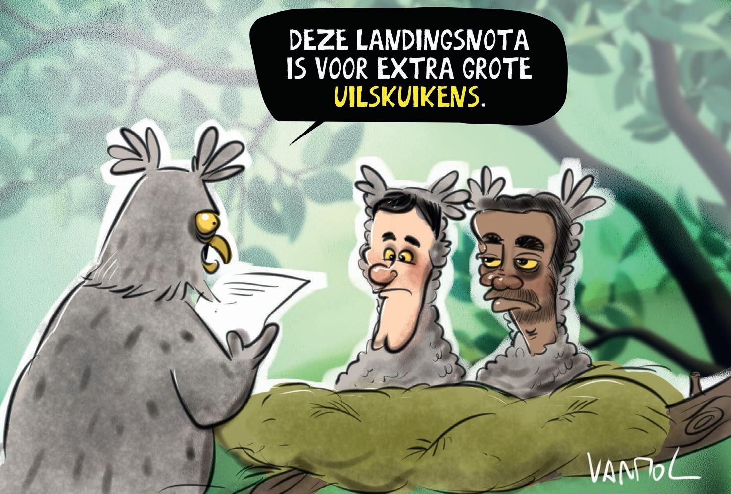 “Alleen trekt het op geen kloten, hé! Wat een rommel! Wat een kutlandingsnota. Ik had maar twee eisen. Ten eerste, dat iedere bladzijde minstens één keer mijn naam zou bevatten met een complimentje. En twee, dat we zouden stilhouden dat we moeten besparen. Maar dat is niet gebeurd.”