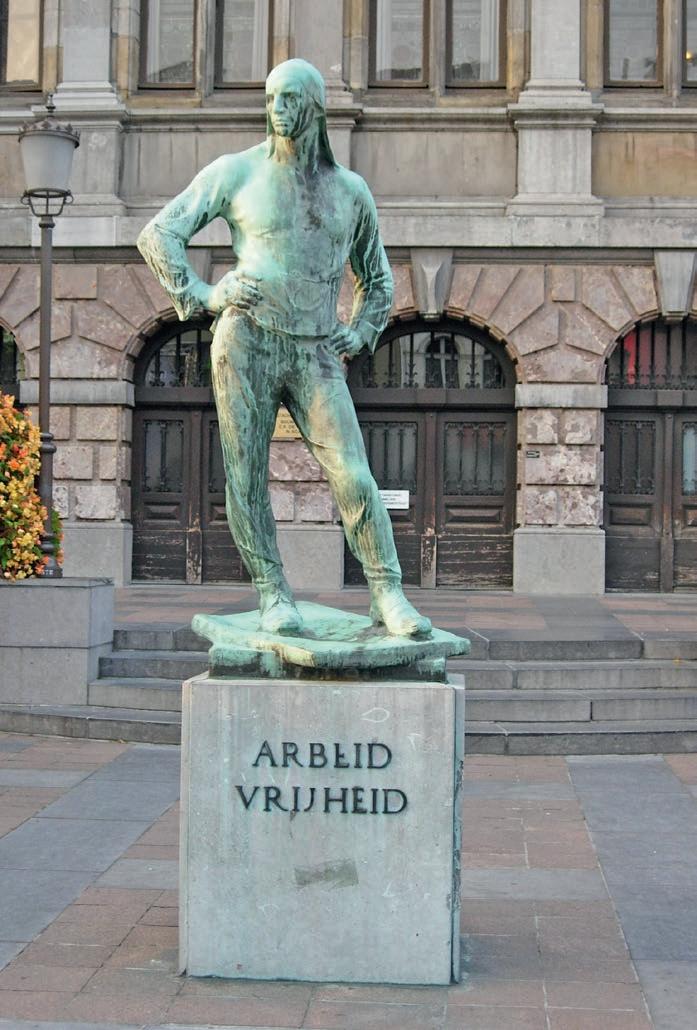 Hij staat zelfbewust en bijna uitdagend voor de ingang van het Antwerpse stadhuis. Met zijn rug naar de zetel van de politieke macht, werpt hij een blik op de Schelde, de slagader van de economische macht in de stad. De meer dan levensgrote bronzen buildrager van Constant Meunier werd 74 jaar geleden op 4 september 1950 plechtig ingehuldigd door de gestelde lichamen.