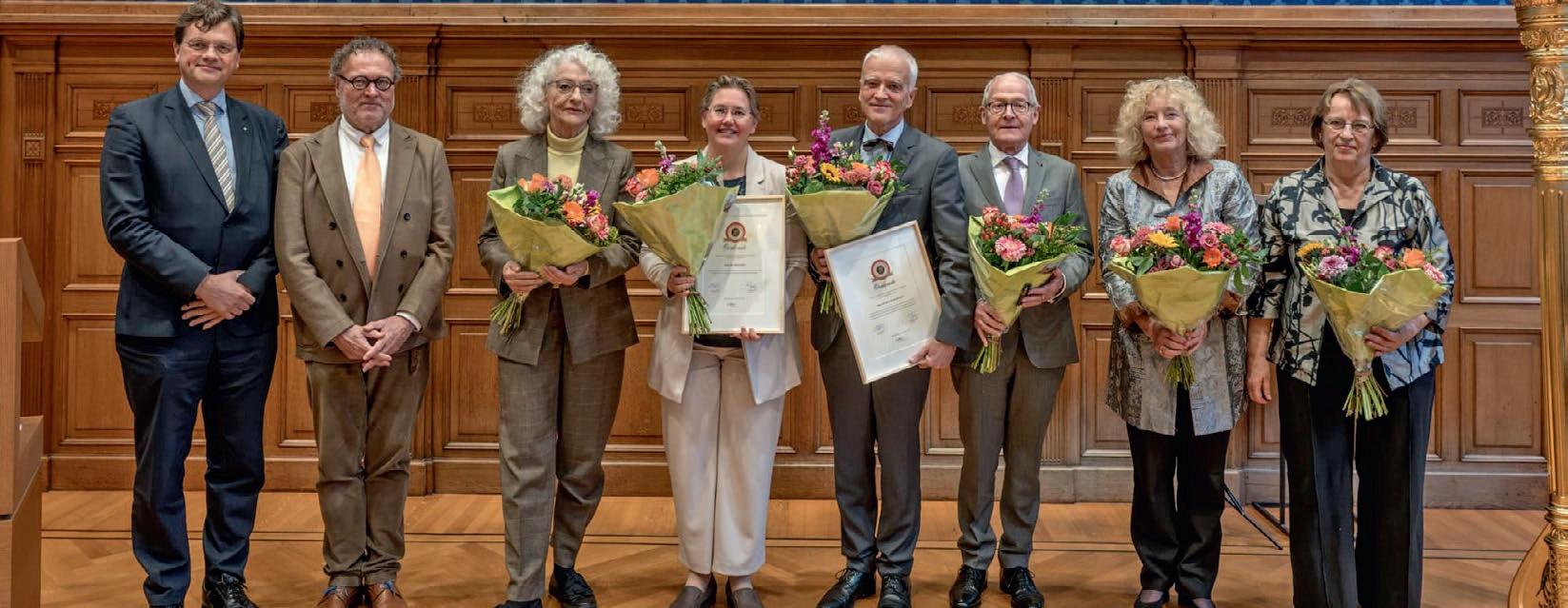 In het midden de laureaten Lotte Jensen en Herman Van Goethem