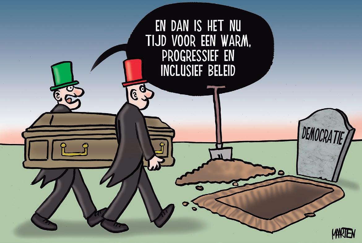 geen confederale hervorming zal doorvoeren, hoewel die door De Wever als conditio sine qua non werd vooropgesteld, zal dat met het excuus zijn dat budgettaire hervormingen nu net iets dringender en belangrijker zijn. Het confederalisme zal even langs de kant van de weg achtergelaten en nooit meer opgehaald worden. Vlaams Belang zal die niet gehouden belofte terecht hekelen, maar heeft met de ondertekening van het ‘ethisch charter’ in Izegem getoond hoever het zelf wil gaan in toegevingen ‘voor de goede zaak’, in casu het doorbreken van het cordon. Ik begrijp waarom men dat deed, maar ten gronde was daar hetzelfde mechanisme aan het werk. Mijn inschatting is dat we deze week getuige zijn geweest van de vertrouwde ‘politique politicienne’. Vooruit zit tenslotte ook al in de Vlaamse regering. Ik luisterde dinsdagmorgen naar Vandenbroucke op Radio 1. Ik hoorde eigenlijk een man die de vier andere partijen smeekte om toch maar wat symbolische toegevingen te doen. Dat heb je met socialisten. Ze hebben een afkeer voor rechts, maar houden ook van postjes, benoemingen en alle andere voordelen van beleidsdeelname. Afwachten wat het zwaarste weegt. En wat Bouchez hen nog zal gunnen.