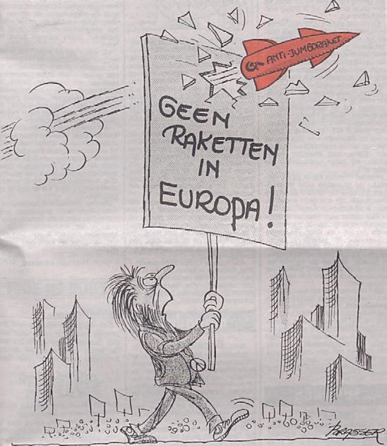 15 september 1983: Vredesbetoging Op 23 oktober stond er een vredesoptocht op de agenda, die uiteindelijk meer dan 400.000 deelnemers zou tellen. De optocht was een protestmars tegen het NAVO-dubbelbesluit, waardoor er kernwapens gestald zouden worden op Kleine-Brogel en Florennes. “De ‘vredesbeweging’ staat mijlen en miljoenen voor. Waar halen zijn voor een dergelijke barnum-campagne in heel het Westen trouwens al dat geld bij elkaar?”, vroeg ’t Pallieterke zich af. “Wij hebben nooit één Vredesbewogene één frank zien bedelen. Waarvan leven die gasten? Geen mens die het weet. Geen mens die het vraagt.”