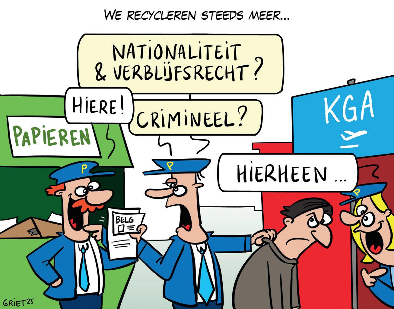 MATHIAS: “Wel, dat zit zo. Ondanks mijn al lergie aan negativisme, probeer ik toch nog de media te volgen. En daar stond een fantas tisch positief artikel in, als je het met de juis te mindset leest. Als het goed is wat Arizona doet, zeg ik dat gewoon. Ik las dat de regering de werkloosheid in de tijd gaat beperken tot maximum twee jaar. Dat betekent dus dat 6.200 mensen in Gent niet meer werkloos gaan zijn in 2027. Dat zijn extra inkomsten voor de stad en de heroriëntering van mid delen uit het OCMW naar warmere projecten. We gaan geld te veel hebben. En dat is goed, want ik zit vol positieve plannen. Zo wil ik subsidies uitdelen aan mensen die hun vuil bakken buiten zetten.”