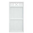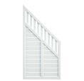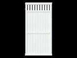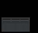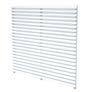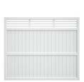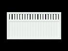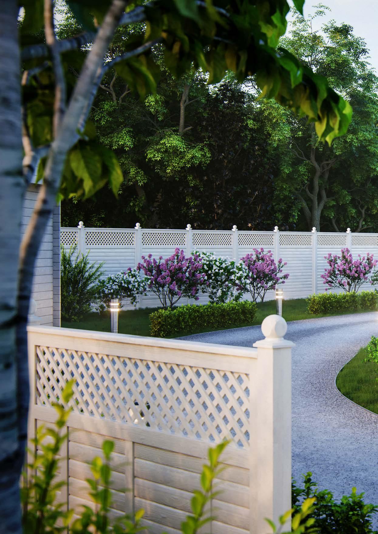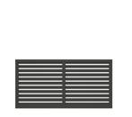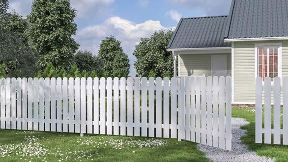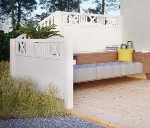 Looking at the Fence category, a panel family with horizontal 28 mm slats called Line with frame profile 32x40 mm is available as white painted and grey pressure-treated.