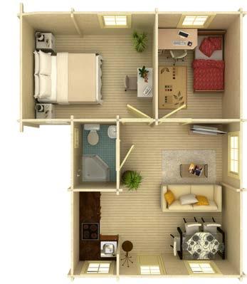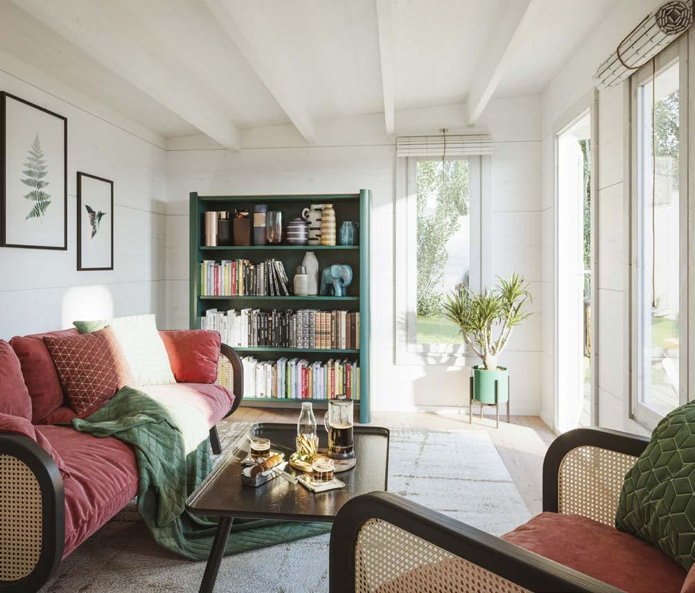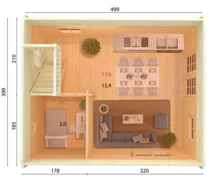 To meet the market demand for having more houses with large glass surfaces, we have created a Heidi 22,5 m2 with large and long windows to let the natural light into the house and have a great view to your garden from inside out. The room layout of this Heidi easily lends itself to use also as a sauna house.