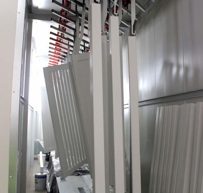 We have invested into modern painting technology that enables us to paint smaller sized garden products like fence panels and posts. Today we are able to paint the products white or dark grey, using flowcoating method and spray chamber method. After painting, the products will dry in a 30 meter long drying chamber, where the whole process of drying can be adjusted and observed.