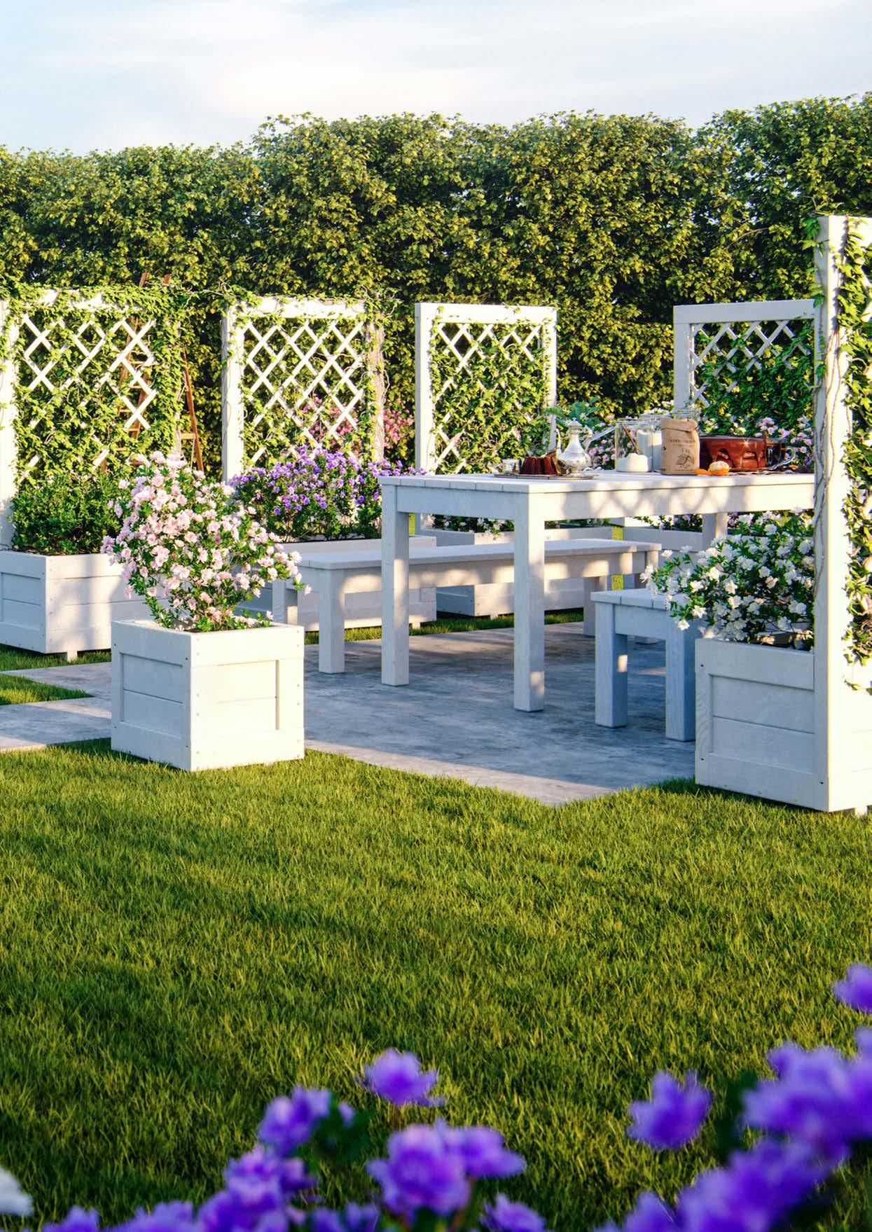 Wood is a natural material and to enjoy our products in the garden for a long time you will need to protect the wooden product against weather effects, wooddestroying fungi and insects. Therefore, we truly recommend using our product treatment service. Depending on the product type we are able to dip, pressure-treat or paint our products (initially white or grey painted). Please read more about treatment possibilities on pages 279-281.