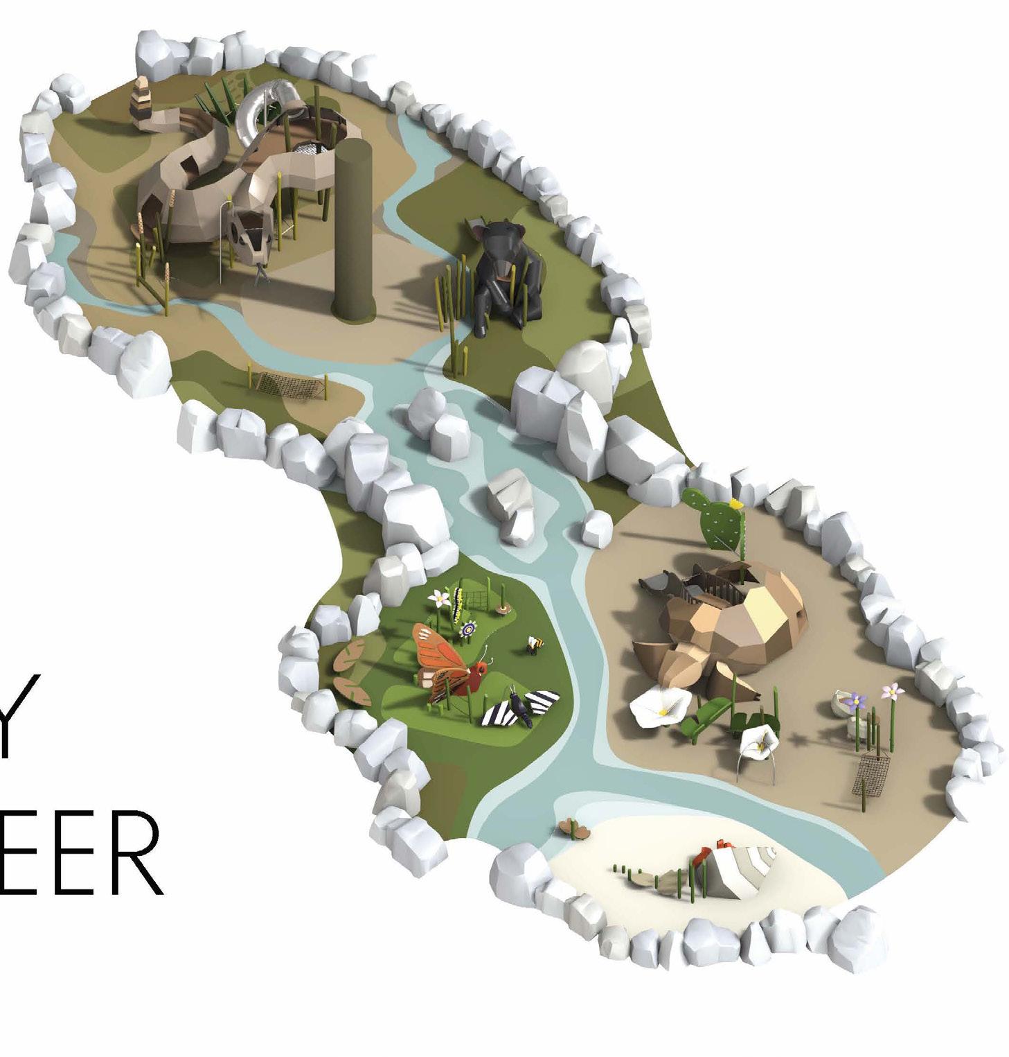 • Using local ecosystems as inspiration, the design will stimulate children’s imaginations, offer physical challenge and beneficial risk, foster social interaction and creative play.