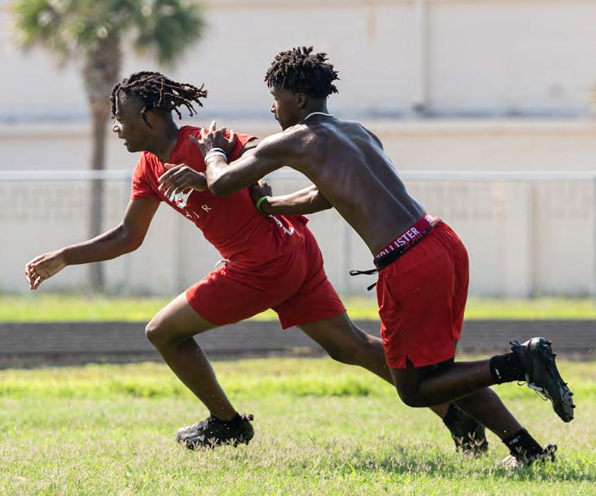 long run.” The Seabreeze football team held a ‘Max Monday’ practice on June 26, with 87% of the players toppling personal bests. Photos by Michele Meyers Seabreeze assistant Kerry Kramer came out of retirement to coach the defensive line. Senior Mike Shropshire runs defensive line drills. Freshman Logan Swartz runs through defensive line drills. Senior wide receiver Gavin Martinez does a little grab-and-go during the 7-on-7 game. Micah Karr (center) goes for the touch as Johntae Haddock makes the catch in a 7-on-7 game. Denzel Shropshire (left) and Amari Peoples battle. LESTER DAVIS, Seabreeze head football coachAhouse in Toscana was the top real estate transaction for May 14-20 in Ormond Beach and Ormond-bythe-Sea. David and Elaine Hoehn, of Ormond Beach, sold 116 La Toscana Rotonda to Bernard Turi, of Utica, New York, for $1,295,000. Built in 2017, the house is a 4/4 and has a pool, an outdoor kitchen, a hot tub and 3,447 square feet of space. It sold in 2021 for $999,900.