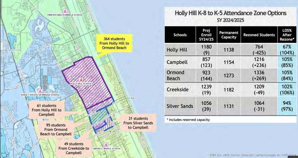 Ormond Beach Middle School was 84% full. Neighboring Holly Hill K-8 was 102% over capacity.
