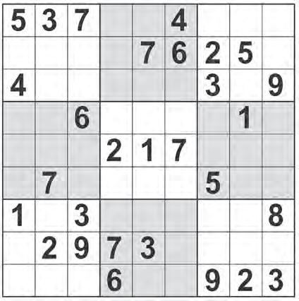 Complete the grid so that every row, column and 3x3 box contains every digit from 1 to 9 inclusively.