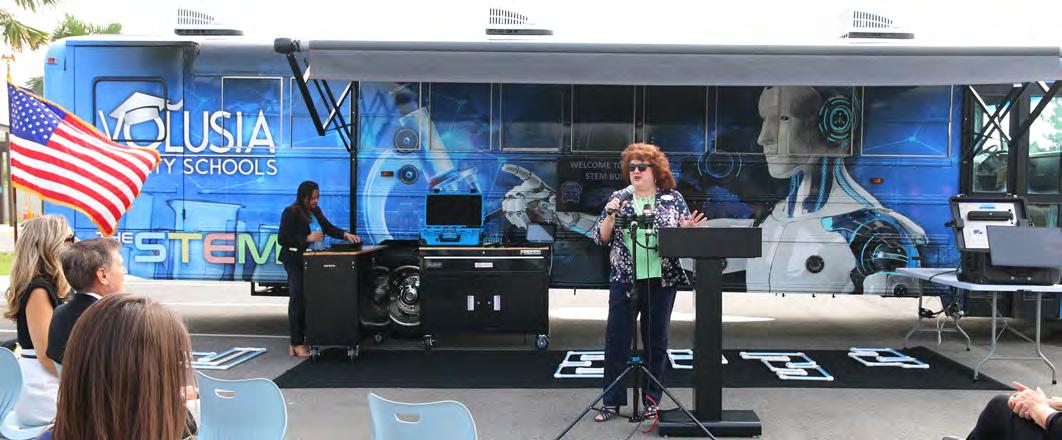 At Beachside Elementary on Tuesday, Oct. 3, VCS unveiled its state-ofthe-art STEM bus, a mobile learning lab that aims to help students develop their skills in science, technology, engineering and math. The bus will travel to all elementary schools in the district, as well as community STEM events, and students will get a chance to enhance their studies with modules on virtual reality, robotics, electricity, microscopes and more.