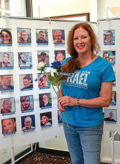 Debbie Kruck-Forrester, founder of Ormond Strong, created a display with the names and photographs of the hostages taken during the Israel-Hamas war. She offered blue and white roses with their names attached to those that stopped by the “Bring Them Home” exhibit. “We did this because we were angry and we can’t go over there and fight,” she said. “It took a long time to put together. It connects everyone with the people. We came up with putting their names with a rose so the people (hostages) are not just seen as a name on a board. People that stop by and get a rose can take them home and look up that person. They will be connected to that person. I felt connected just by doing this.”