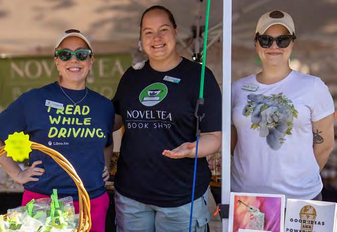 Novel Tea Book Shop’s Stephanie Gonter and Dasha Linna, with Mango Leaf Trading owner Jen Idleman.