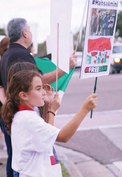 Many held signs with Mahsa Ami ni’s name, with the promise that they won’t forget the 22-year-old’s death on Sept. 16 in Tehran, Iran, after she was arrested by the coun try’s morality police for allegedly wearing a hijab improperly. She died later in a hospital under suspicious circumstances. Since then, Iranians have held massive demonstrations in the country, with women burning head scarves, despite violence from Iranian security forces.