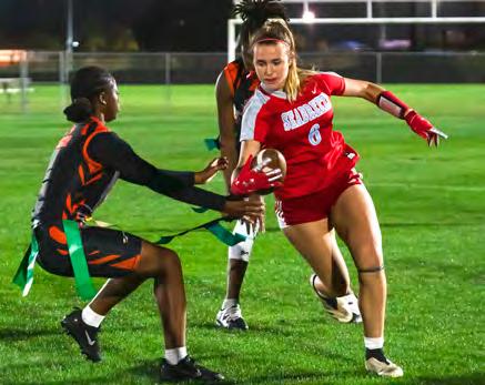 Mainland’s wide receiver Kassie Stoner makes her way through Fightin’ Tiger before going out of bounds.