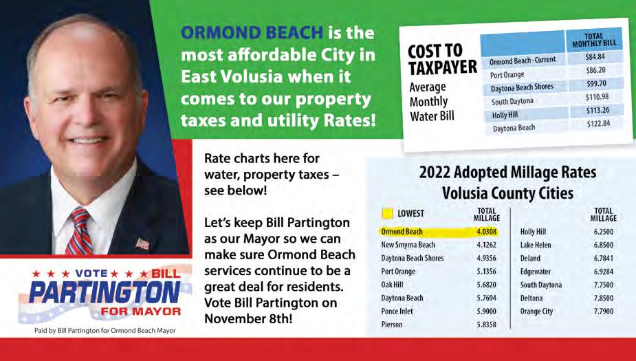 Flagler County additionally reported last week that the Flori da Department of Transportation would soon begin a two-week rock revetment project along some criti cally-eroded segments of the shore line along A1A between South 9th Street and South 23rd Street. FDOT will install coquina rock to match pre-storm conditions as part of the recovery from Ian, the news release stated.