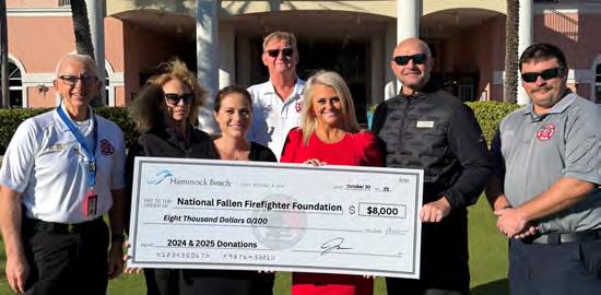 The 9/11 Memorial Tribute Climb Inc., Hammock Beach Golf Resort & Spa and the Flagler County Fire Rescue Annual Golf Outing presented an $8,000 check to the National Fallen Firefighters Foundation. The funds were raised through the 2024 9/11 Memorial Tribute Climb and Golf Outing, along with early contributions from 2025 events.