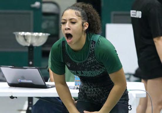 170 (snatch) and 185 (cleanand-jerk) for a 345 total. Crews was next overall with a 115, 155 for a 260 total. In Seabreeze’s season-opening meet against Spruce Creek, Sandcrabs’ 129-pounder Camila Arellano won both Olympic (250-pound total) and traditional (280) titles.