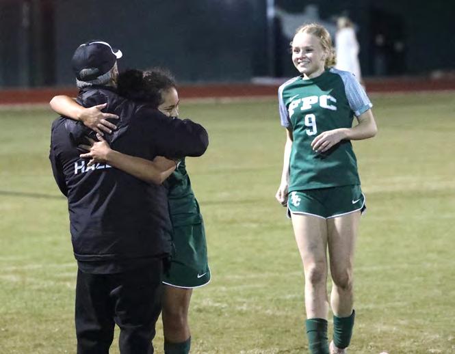 After the goal, Kummernes ran over to the sideline and hugged FPC coach Pete Hald. It was Take 2. Earlier in the second half, she punched in a goal, ran over and hugged Hald, and then discovered it didn’t count.