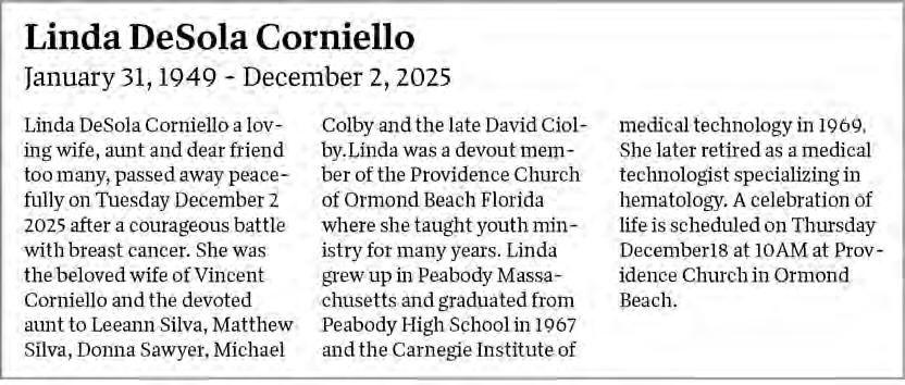 Nelliana Calvert 7763-328907 Dec. 11, 2025 PUBLIC NOTICE $4,040.05 USD was seized via search warrant by the Flagler County Sheriff’s Office. A portion of the funds originated from a victim located in Flagler County which were taken fraudulently and under false pretenses between August 12, 2025, and August 14, 2025. 7763-328543 Dec. 11, 18, 2025