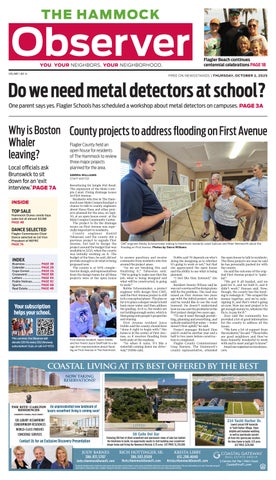 The Flagler County Sheriff’s Office was notified of a black bear in the residential areas of the C and F Sections in Palm Coast. PAGE 4