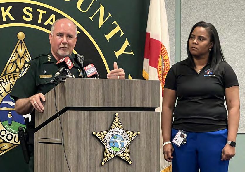 BRENT WORONOFF ASSOCIATE EDITORAfter the Flagler County Sheriff’s Office responded to six bomb and shooting threats at four county schools over a three-day period, Sheriff Rick Staly called a press conference Thursday, May 16, at the Flagler County Sheriff’s Operations Center. Despite the warnings from the sheriff, the calls continued. One arrest has been made (see sidebar on this page).