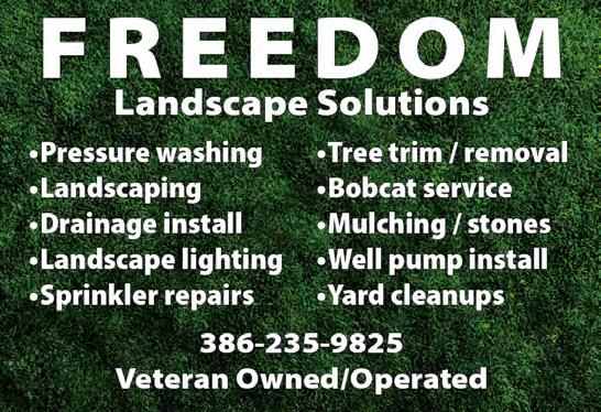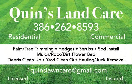 Like New Gas Trimmer $40, New Scott’s Lawn Fertilizer $20, Black Plastic Edging 60’ $10 386-586-8745 Cleaning services Ana’s Personal housekeeping. One Time, Weekly, Or Monthly Service (PC) anaspersonalhousekeeping@gmail.com 386-868-9662