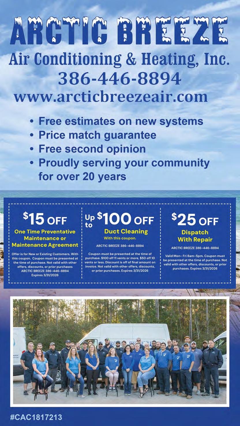 With Spring Break underway, Volusia County is encouraging residents and visitors to plan ahead and keep safety in mind while enjoying the beaches. Volusia County recommends using the Volusia Beaches mobile app, which provides real-time information on beach conditions, access points, and amenities along the coastline. As portions of the county’s beaches allow vehicle access, drivers should remain alert for pedestrians, cyclists, and other beach users, particularly during periods of heavy activity. Beach driving is permitted only in designated areas where standard traffic laws apply. The speed limit is 10 mph, headlights must remain on, and at least one front-seat window must remain open while driving. Residents who have not yet done so are encouraged to register their vehicles through ParkVolusia to receive free beach driving access and off-beach parking at Countyowned lots. For non-residents, daily and annual beach driving and off-beach parking passes are for sale at www. parkvolusia.org.