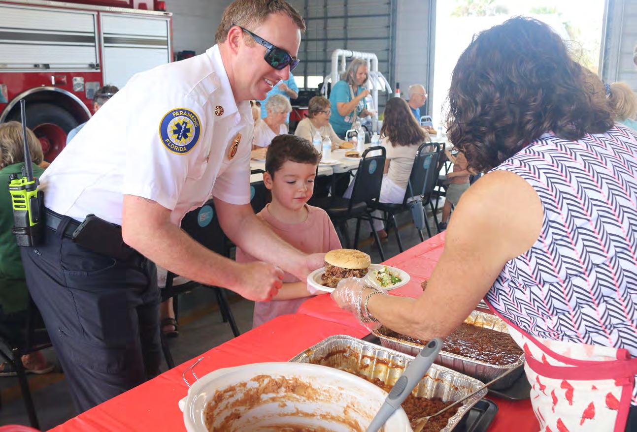 Flagler Beach Fire Chief Stephen Cox with his son Carter, 6, at the Smokin’ at the House fundraiser. Photo