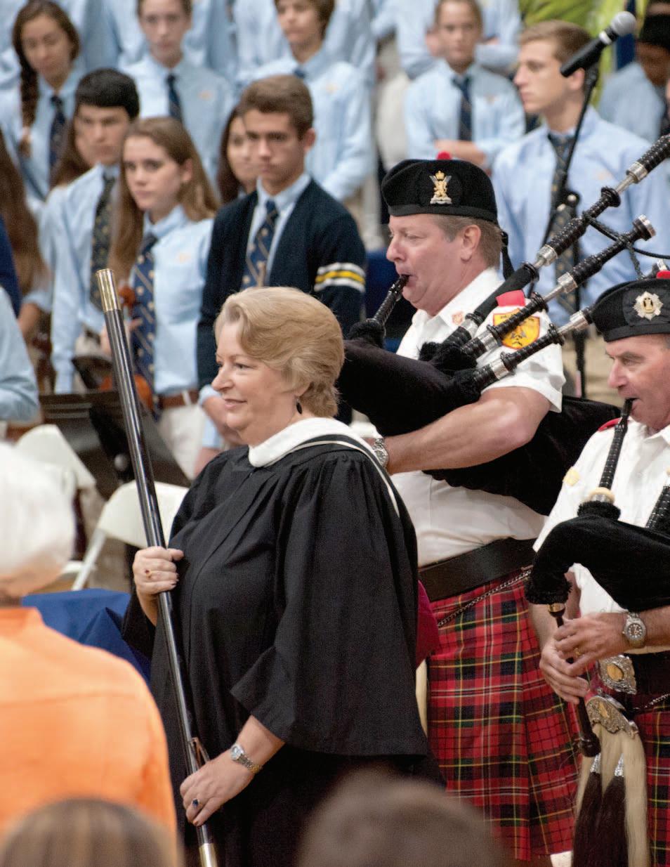30 year teaching veteran caroline goodwin leads the Installation procession.