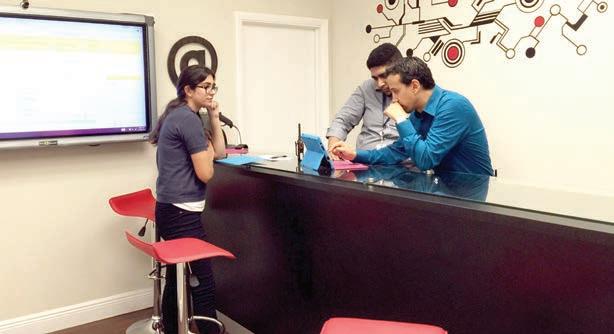 create a new, state of the art STEM Lab (middle, left, and bottom) in room 329. STEM stands for Science, Technology, Engineering and Mathematics. Art is incorporated into each one of these disciplines, thereby creating a truly comprehensive laboratory. PTS, in collaboration with Alienware and Dell, has outfitted the STEM Lab with the latest powerhouse and forward thinking Dell computers and 3D printers. e interior environment of the STEM Lab is furnished with equally creative and progressive tables, chairs and energy efficient LED lights. A robotics arena sits at the heart of the STEM Lab, encouraging reconfiguration and collaboration. We didn’t stop on the inside of the classroom though; we brought the STEM concept outside as well! Immediately outside room 329, we created an immersion environment for technology, capturing a former locker alcove and outfitting it with flat screens, LED lighting, and enhanced audio. e students themselves program the outdoor space. It can be used for computer collaboration, robotics, and programming or simply just to plug in and recharge.