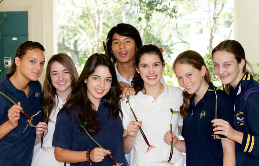 Cortada addressed the entire school and talked about the need to generate awareness about global climate change and habitat destruction. He encouraged each member of the community to take action. The student and faculty involvement was outstanding. After convocation, students and faculty met with Xavier Cortada and participated in a ceremonial dedication. Each participant took a mangrove propagule and placed it in a plastic water-filled cup, stating “I hereby reclaim this land for nature.” The mangrove propagules will be nurtured into seedlings and eventually planted along coastal areas.